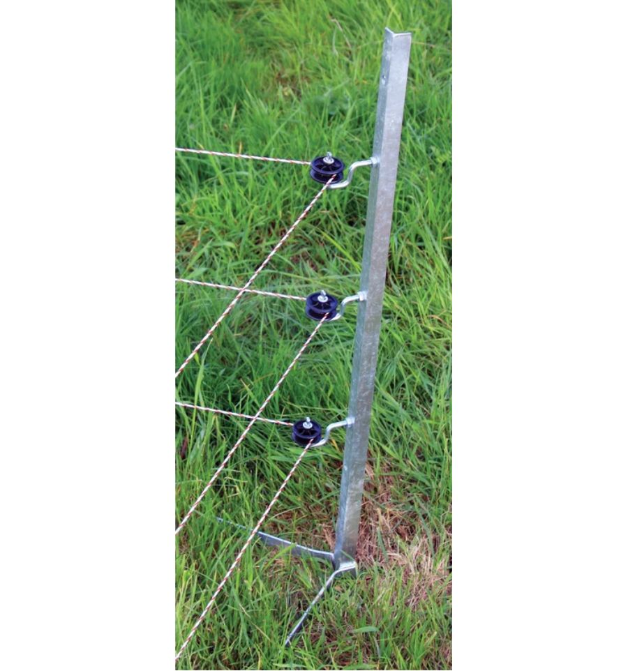Pour faciliter le passage des fils, le piquet de coin pour cloture est composé de trous pré-percés afin d'y placer des isolateurs.