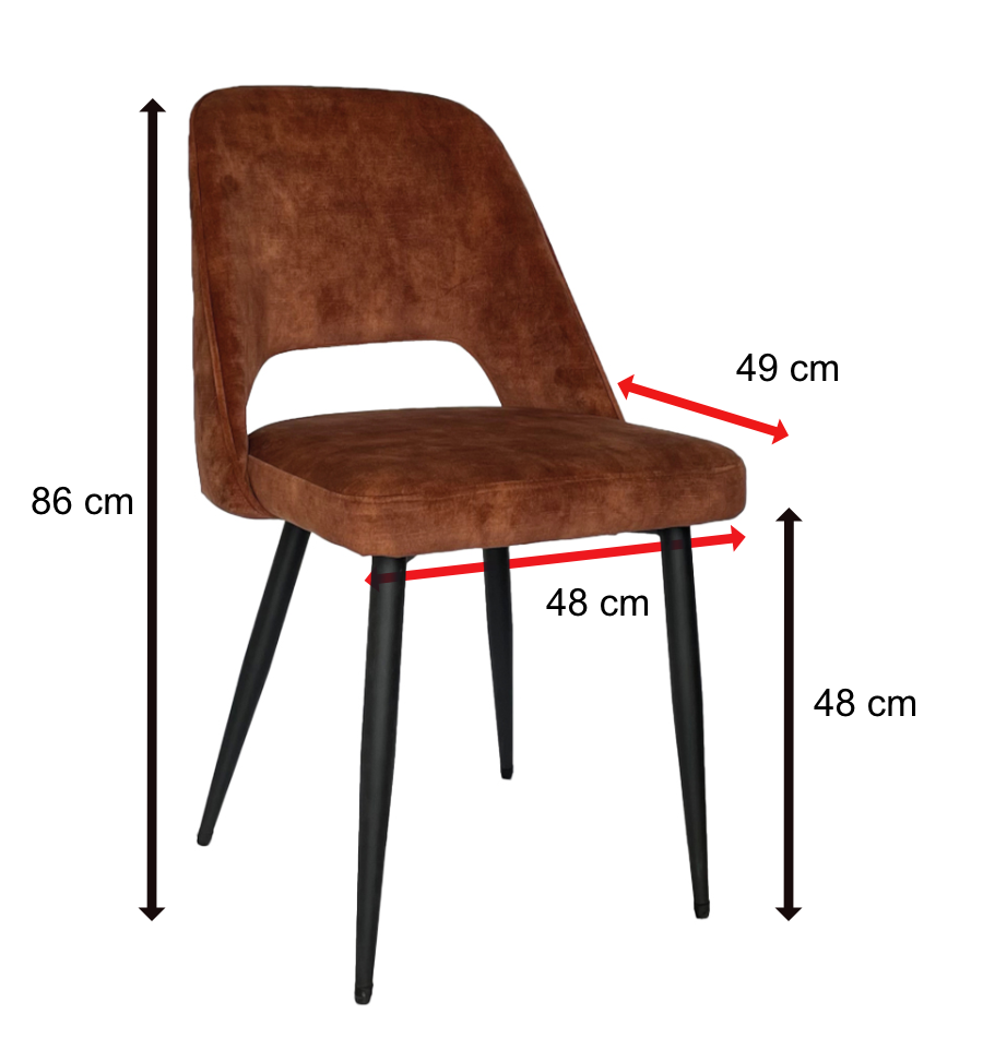 Avec une hauteur totale de 86 cm et une hauteur d'assise de 48 cm, cette chaise offre un confort optimal à vos clients.