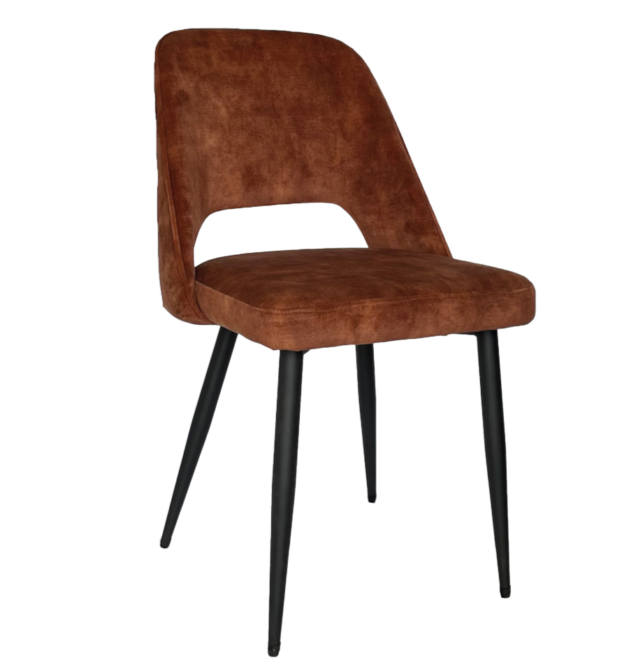 Parmi nos chaises d'intérieures, nous proposons aussi dans le même design, la chaise haute en imitation velours.