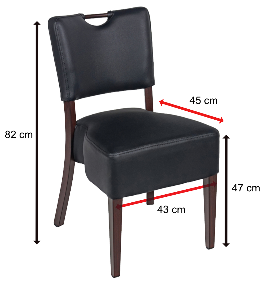 - Finition wengé avec assise et dossier tapissés en imitation cuir noir, pour un rendu sobre et raffiné.