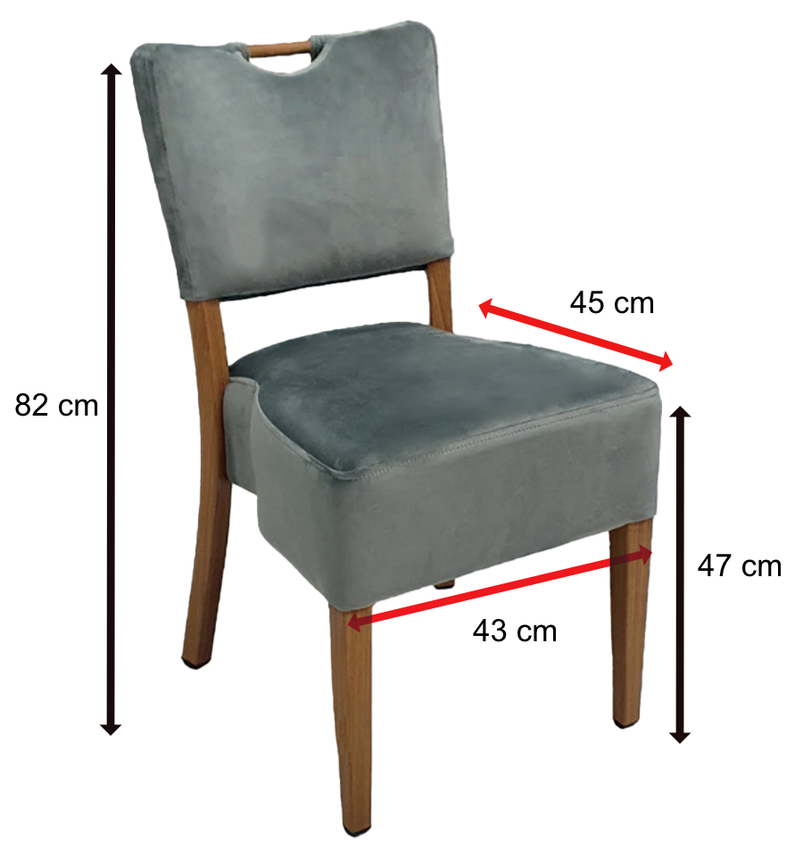 - Finition naturelle avec assise et dossier tapissés en velours gris