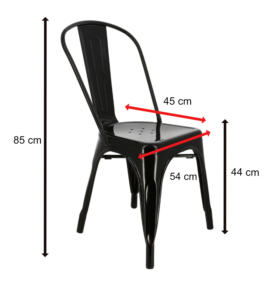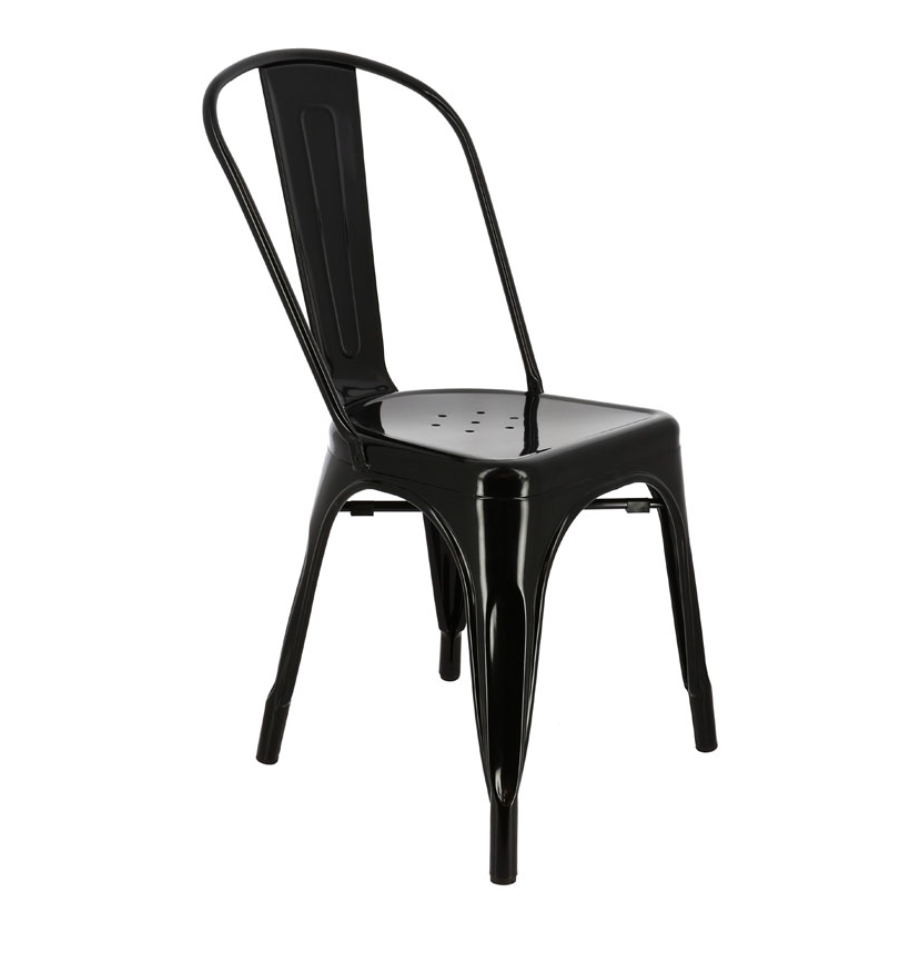Cette chaise industrielle métal a une finition acier recouverte d'un vernis transparent ou d'un vernis noir, ce qui la rend très résistante.