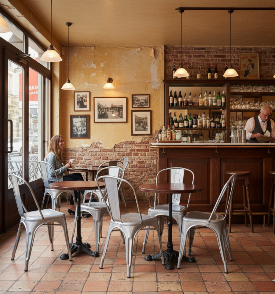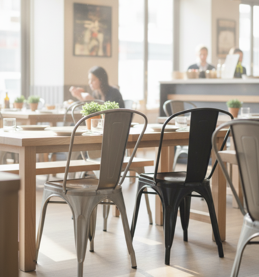 Grâce à son design contemporain, la chaise industrielle s'intègre facilement dans plusieurs environnements.