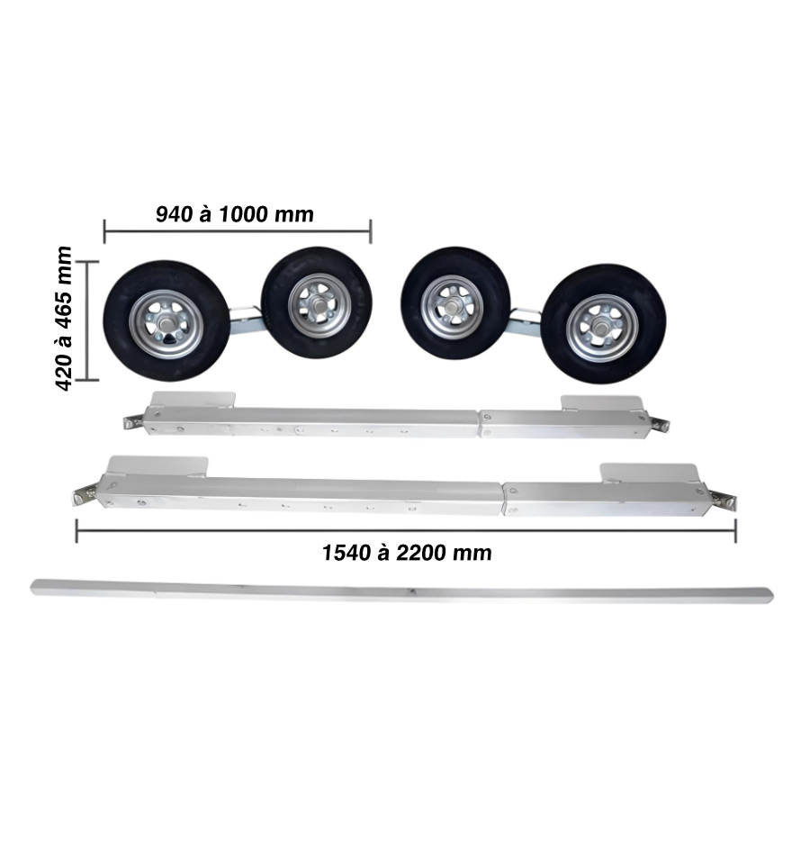 Notre chariot dolly fourrière est composé de 2 cadres de roues avec chacune 2 roues et 2 barres centrales.