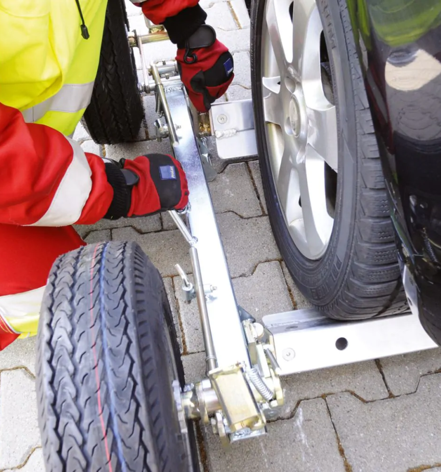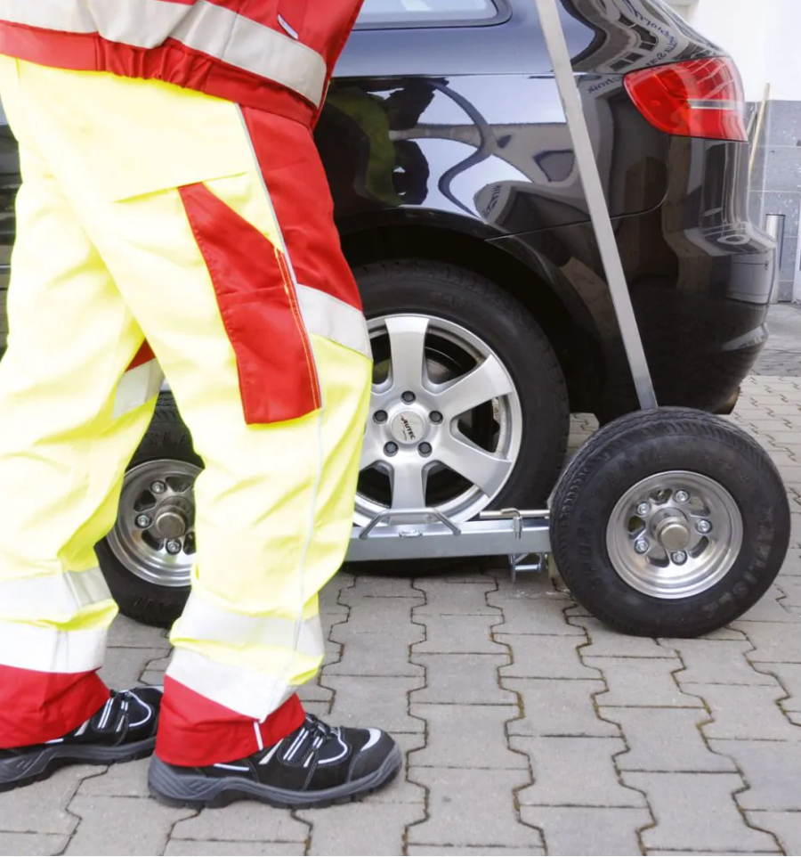 Le chariot dolly fourrière est un équipement permettant de déplacer ou remorquer une voiture en toute sécurité. Notamment les véhicules ayant les roues bloquées ou braquées.