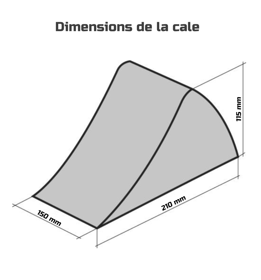Notre cale pour roue voiture mesure 210 mm de long, 150 mm de large et 115 mm de hauteur. Ses dimensions permettent un rangement et une manipulation facile.
