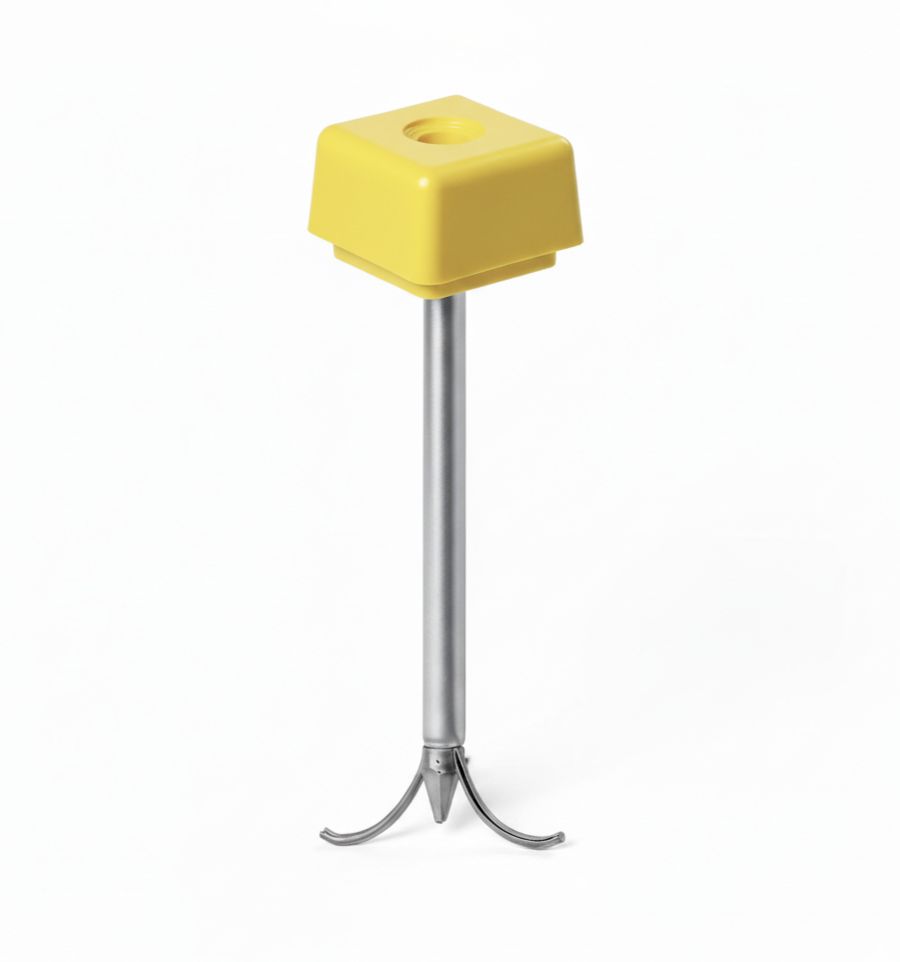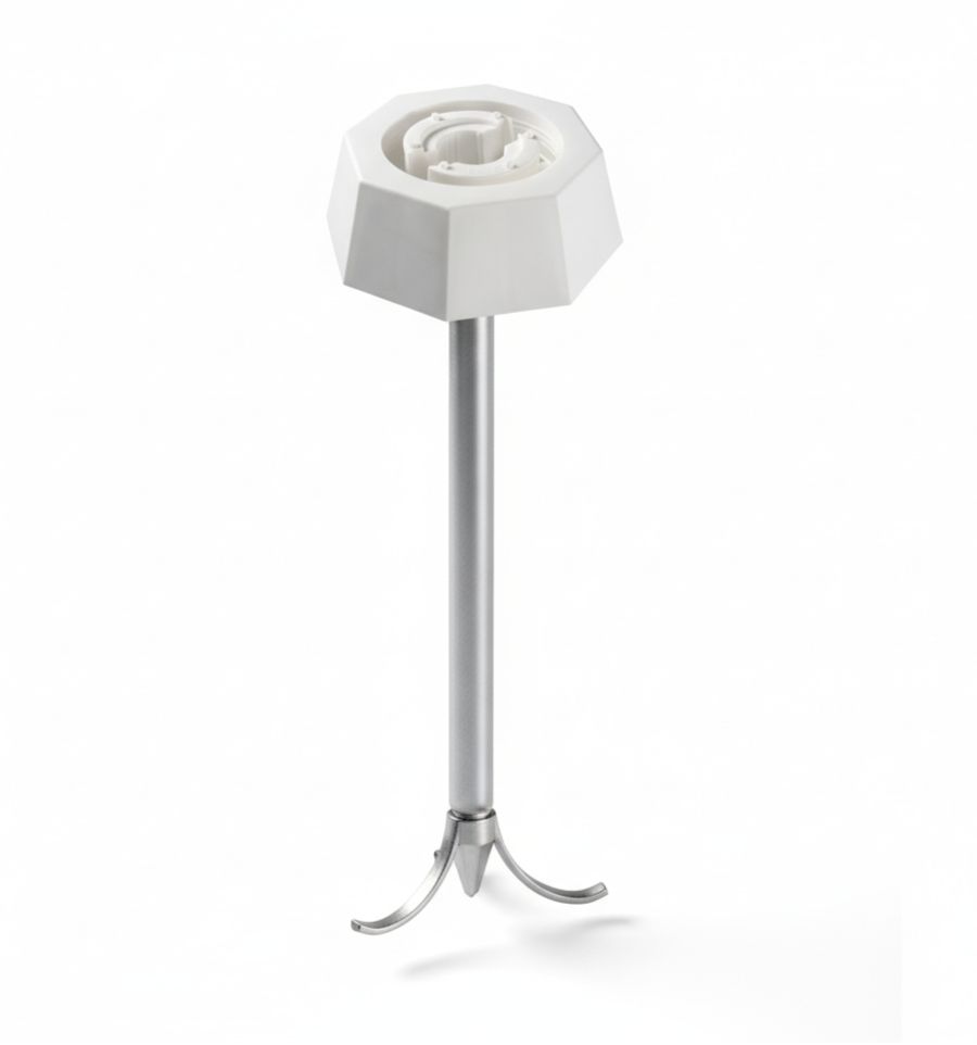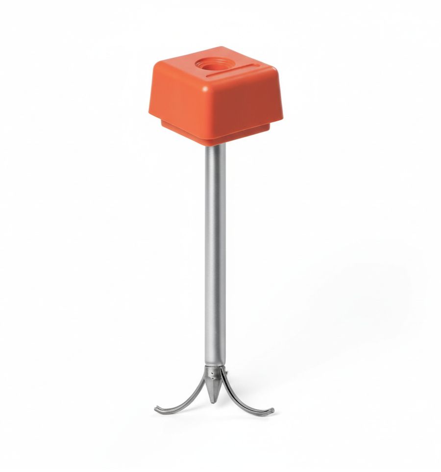 La borne topographique est conçue pour offrir une implantation fiable et durable sur tout type de terrain. Son harpon d'ancrage en point diamant de 20 mm de diamètre assure une excellente stabilité, renforcée par deux fils de 6 mm à embout large garantissant une bonne fixation dans le sol.