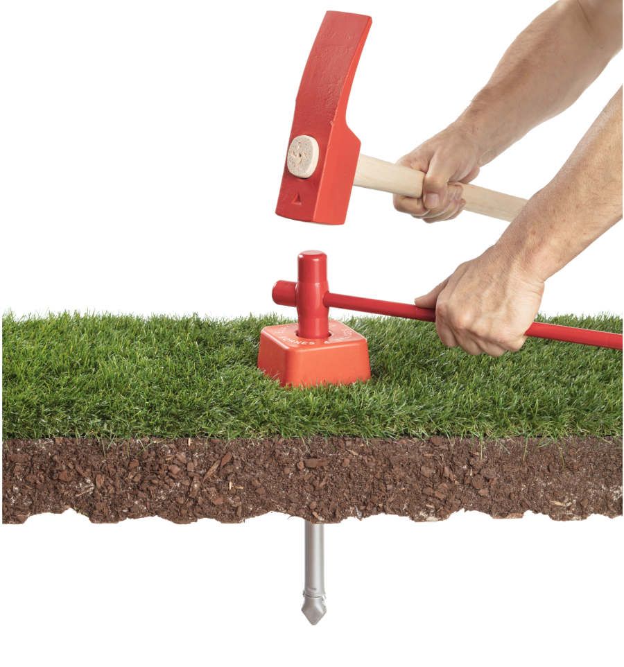 - Glissez ensuite le tube galvanisé dans le sol, en veillant à ce qu'il reste parfaitement vertical.