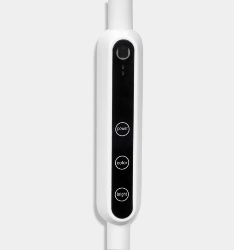 La lampe pour poste de travail industriel est réglable grâce à une télécommande. L'utilisateur peut choisir parmi 5 températures de couleur (de 2700 à 6500 K) avec 5 intensités lumineuses. Elle permet également de régler une minuterie.