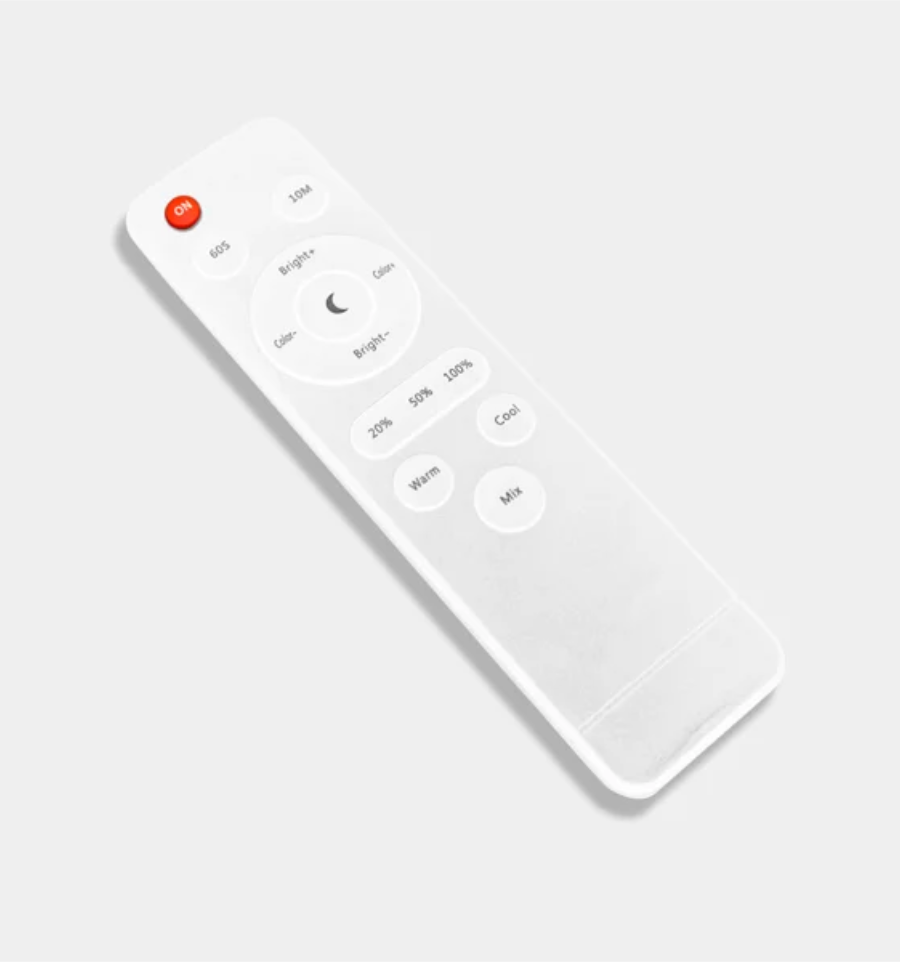 Une télécommande permet de régler la température de couleur (5 niveaux entre 2700 et 6500 K) et l'intensité lumineuse (5 niveaux par température).