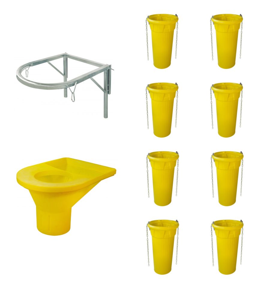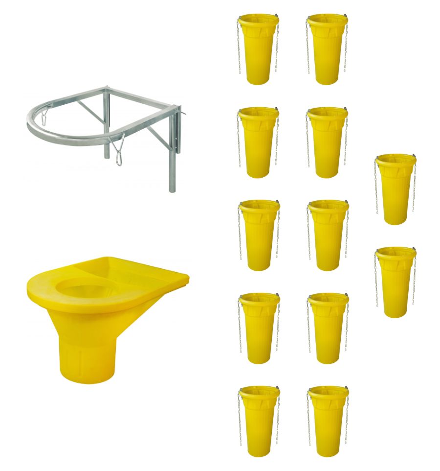 - Kit 8 goulottes : 1 support métallique + 1 trémie de départ + 8 goulottes (environ 9 m)