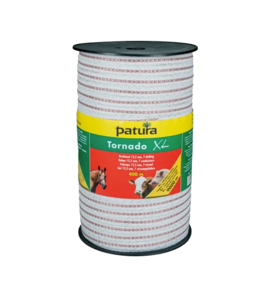 Découvrez notre bobine de 200 ou 400 m de ruban électrique de clôture de 12,5 mm de large avec une conductibilité maximum allant jusqu’à 9 km.