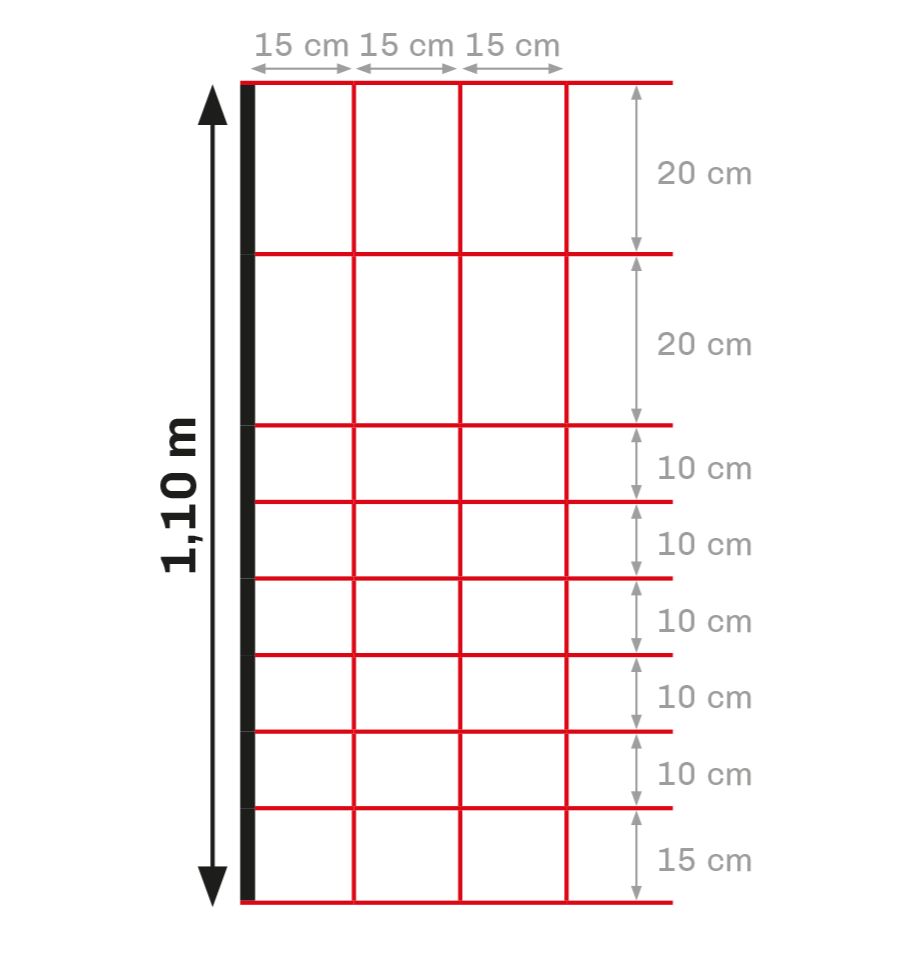 Il est composé de 9 rangées de mailles soudées et 3 conducteurs électriques en inox de 0,20 cm, ce qui lui offre une résistance optimale.