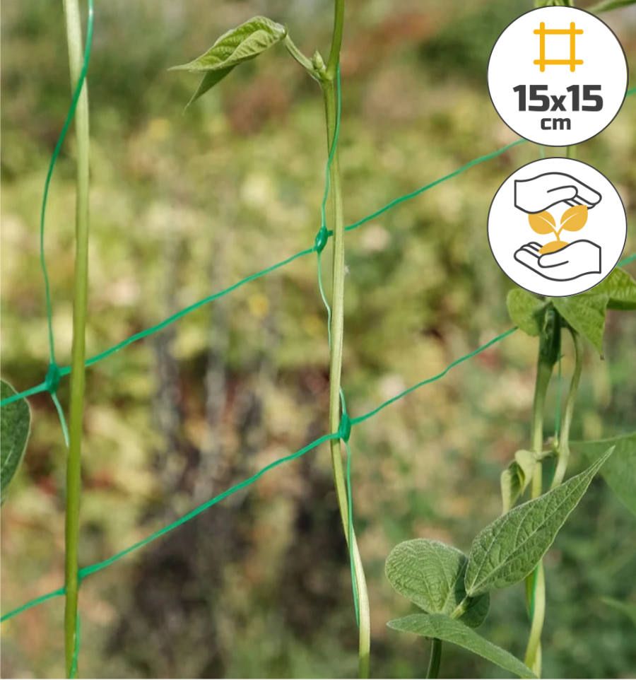 Sa maille de 15 X 15 cm permet de protéger les plantes et d'améliorer l'aération des cultures. Sa hauteur de 185 cm permet d'être utilisé pour des cultures hautes ayant besoin de croissance importante.