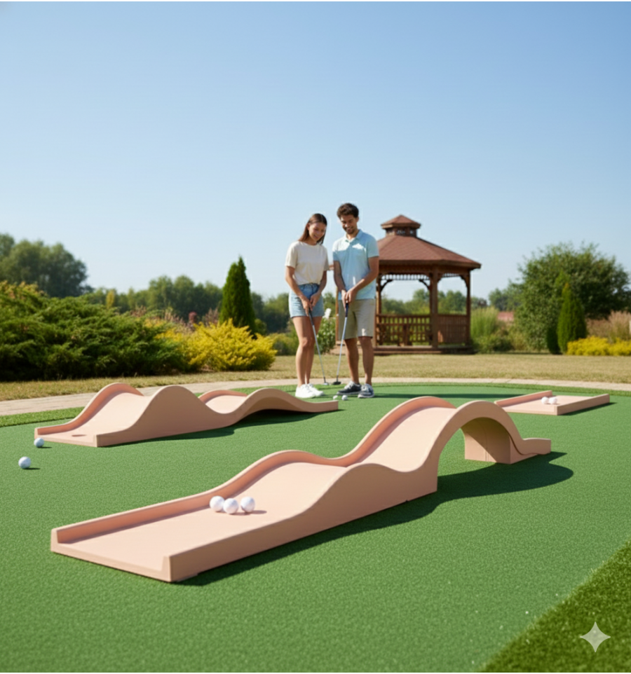 Ces modules de pistes de mini golf sont conçus pour offrir des niveaux de difficultés variables, mais toujours atteignables. Vous pouvez donc moduler et accentuer l'originalité de votre minigolf.