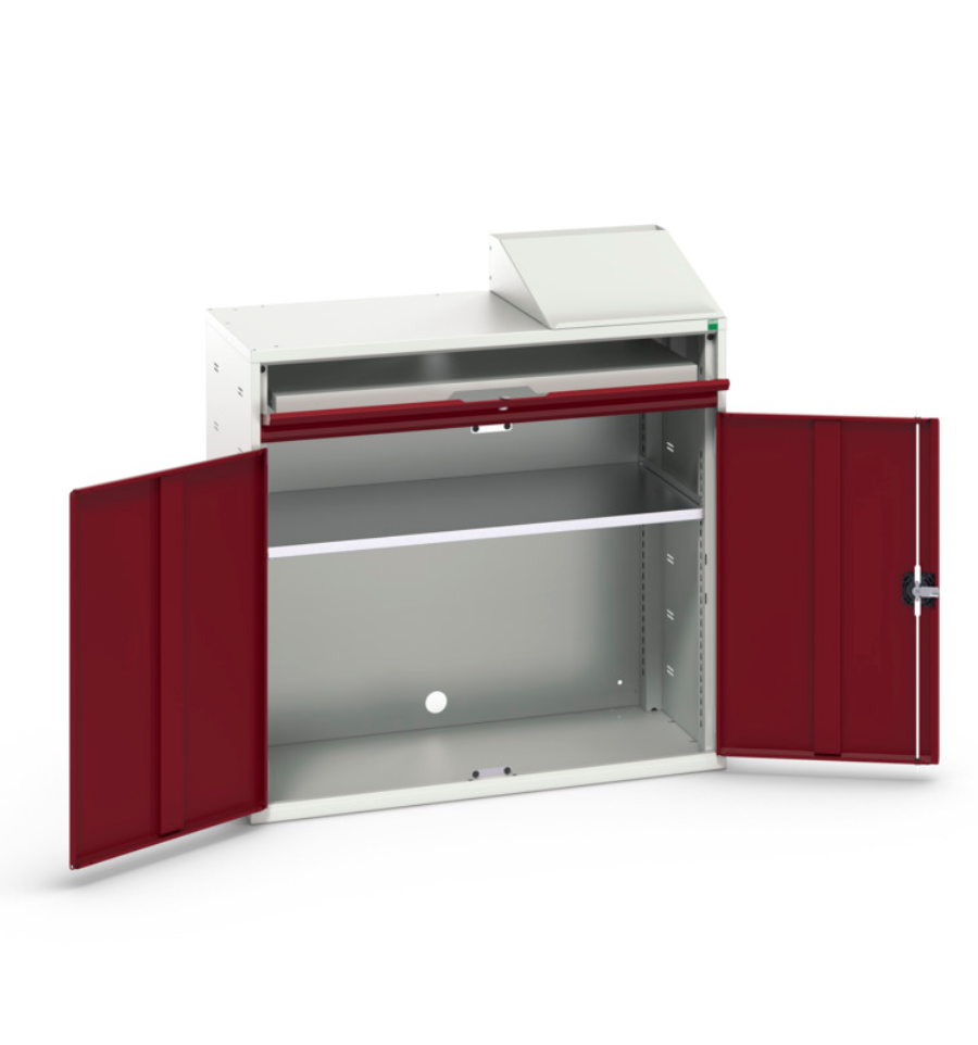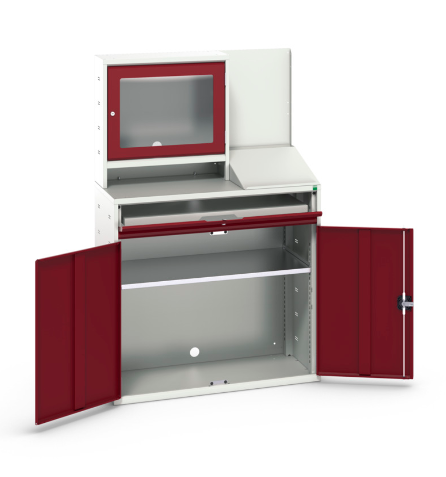 - Structure gris clair RAL7035 / portes rouge pourpre RAL3004 : le mobilier rouge stocke souvent des outils critiques ou spécifiques