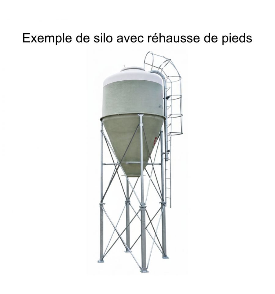 Ce silo agricole dispose de 3 ou 4 pieds (en fonction de sa capacité) en acier galvanisé à chaud, d'un tube de chargement pneumatique, d'une échelle avec protection et d'un couvercle à ouverture depuis le sol.