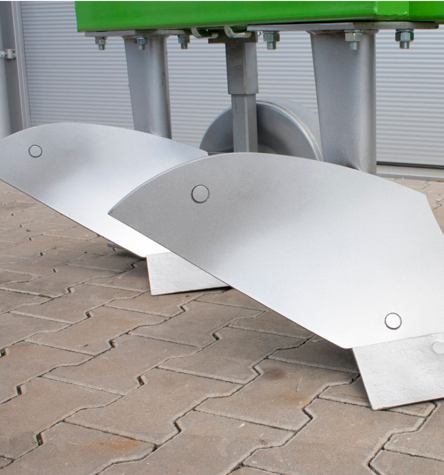 Les corps de la charrue sont équipés d'une lame de coupe positionnée au-dessus du versoir. Cette lame fait tomber la couche superficielle du sol au fond du sillon.