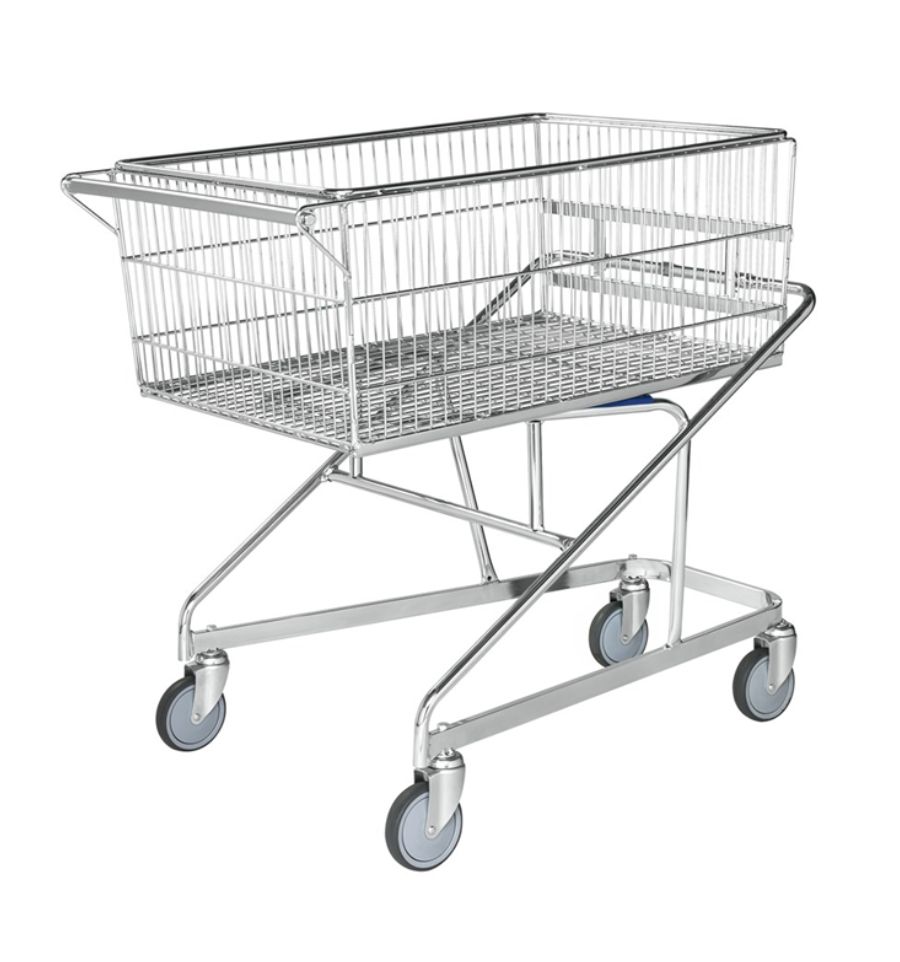 - Modèle 1 : charge maximale 100 kg, un panier supérieur et un panier inférieur, 4 roues pivotantes (option pour deux roues équipées de freins)