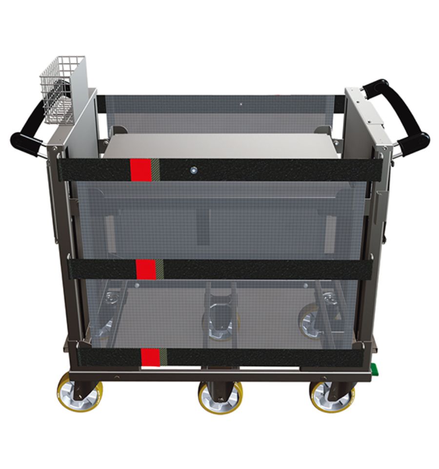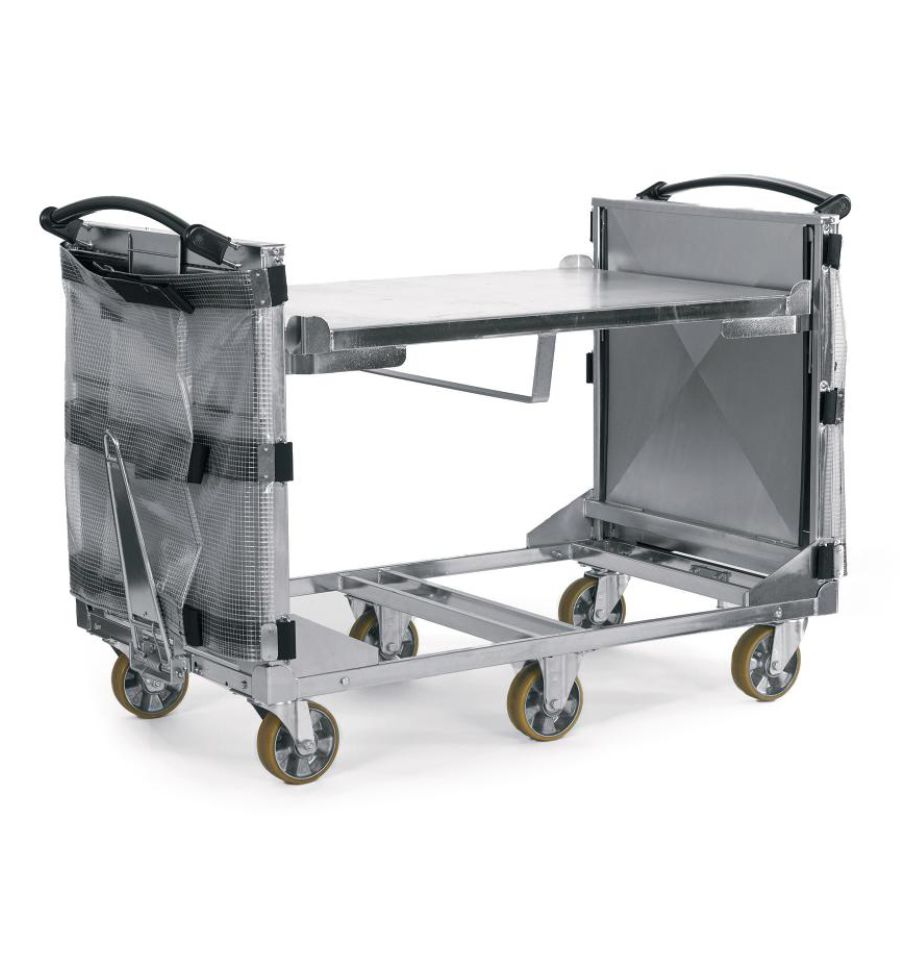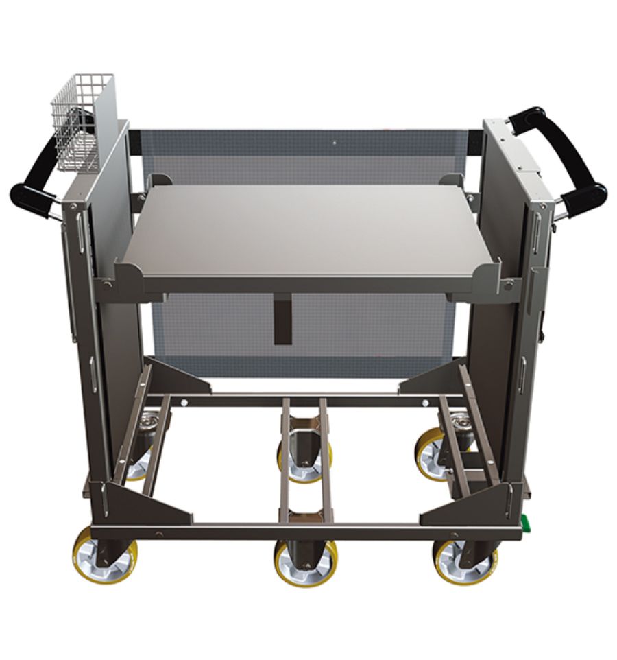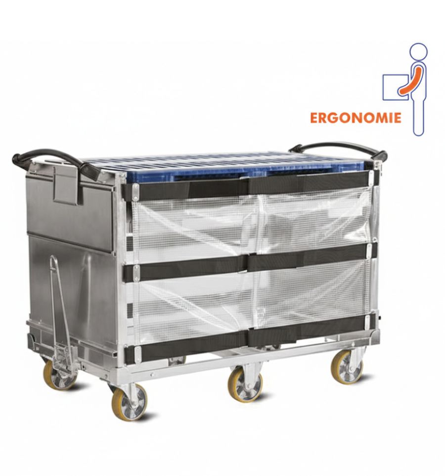 Retrouvez le chariot ergonomique avec plateau volets anti-chute.