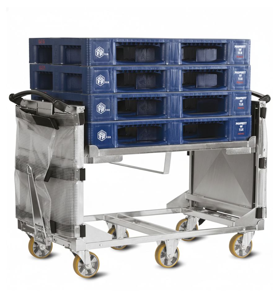 Équipé d'un plateau et d'un système de volets anti-chute, ce chariot à plateau ergonomique garantit une excellente stabilité des marchandises.