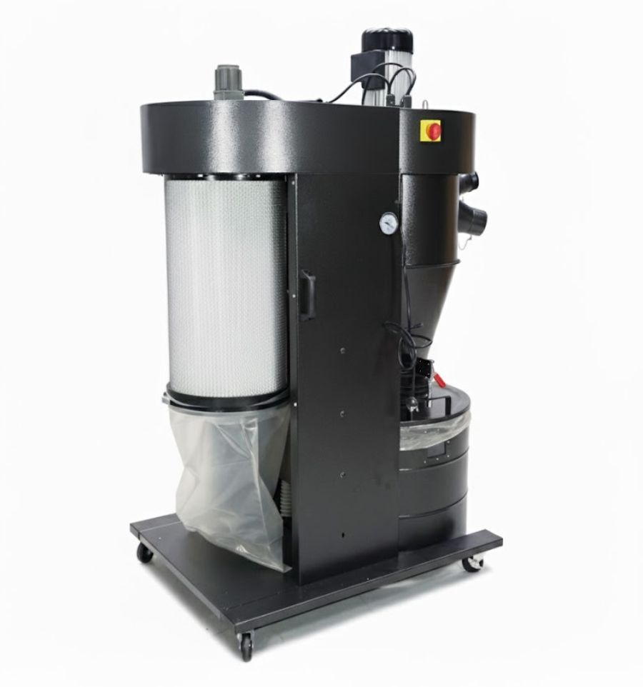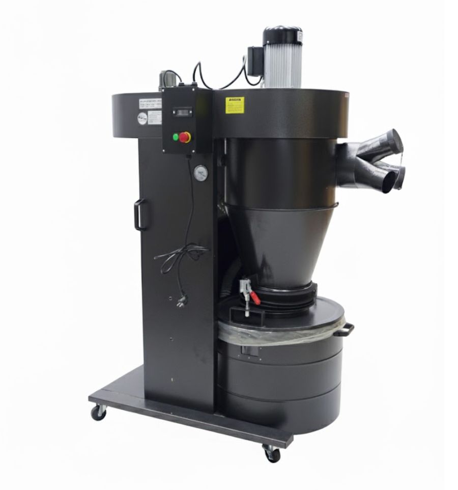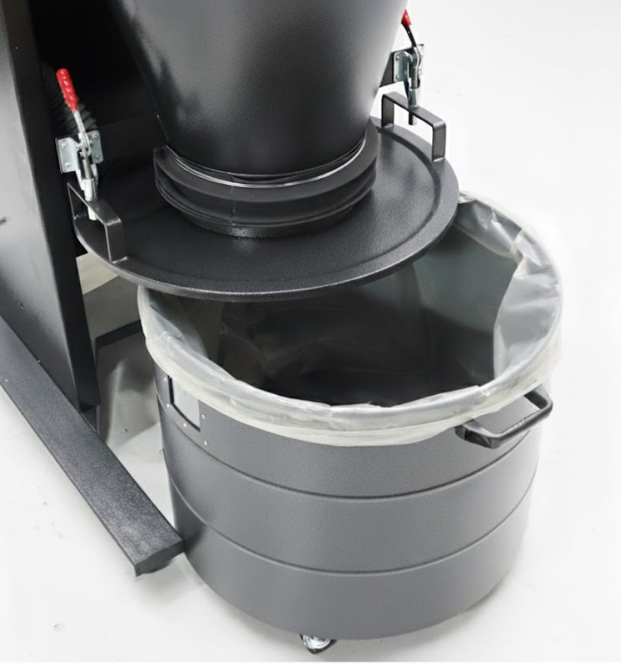 Grâce à son aspiration cyclonique, l'aspirateur permet de récolter une très grande quantité de poussières de bois au moment de l'usinage dans vos ateliers.