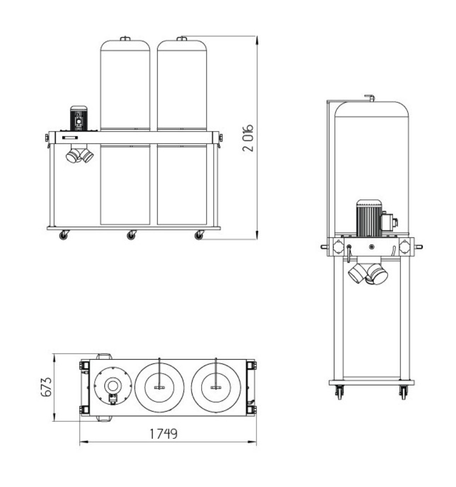 Il est équipé de 2 sacs de réception de 200 litres chacun ainsi que de 2 sacs de filtration.