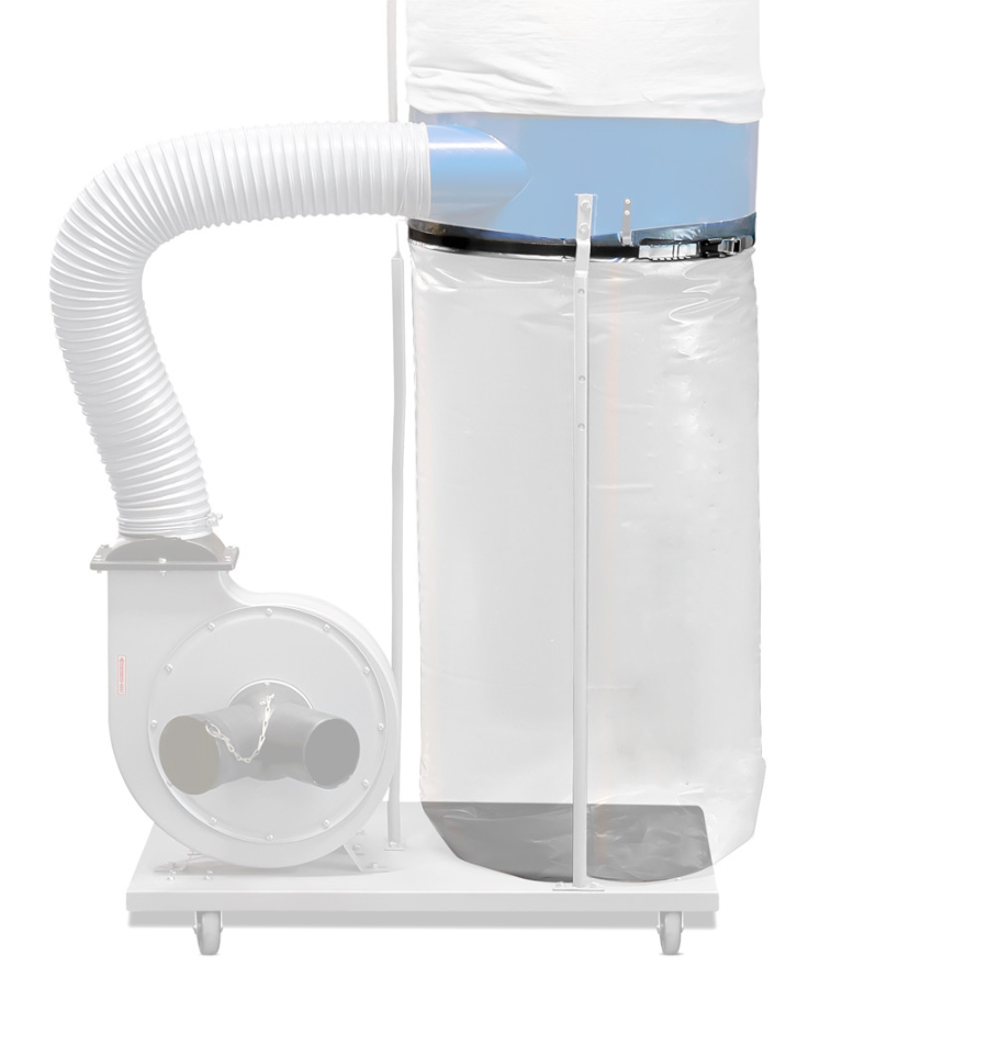 Cet équipement se fixe sur votre machine avec un coller de serrage pour sac (livré avec votre machine). Ce collier est réutilisable, si jamais il se détend ou s'use, n'hésitez pas à nous transmettre une demande de devis.