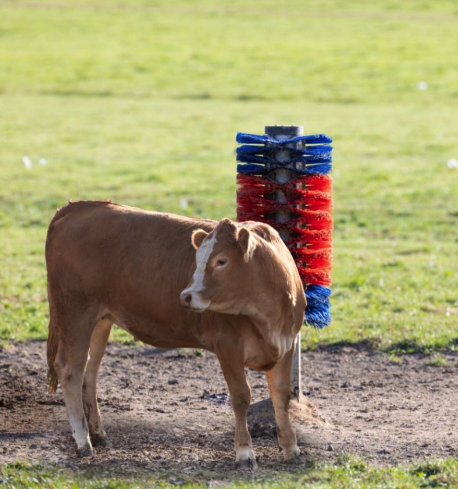 Pour que les bovins l'utilisent librement, la brosse peut être placée sur des surfaces dures ou même dans le pâturage. Le fait de la mettre en libre accès réduit le stress des animaux, car ils peuvent se nettoyer et se gratter dès qu'ils le souhaitent.