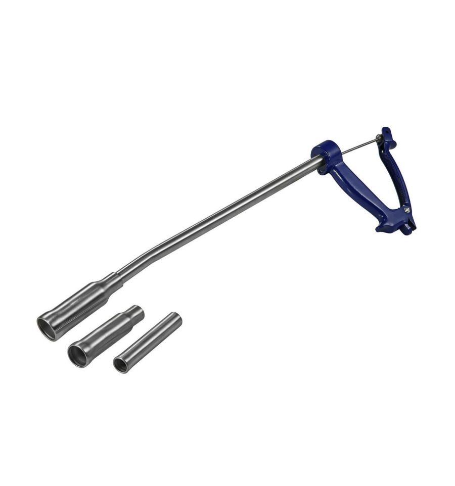 Optez pour notre lance pour l'administration de bolus ou d'aimant stomacal à vos animaux. Cette lance est en acier inoxydable et dotée d'une poignée en métal. Elle mesure 50 cm et possède des têtes interchangeables de différents diamètres (18-21-26 mm) en fonction de votre besoin.
