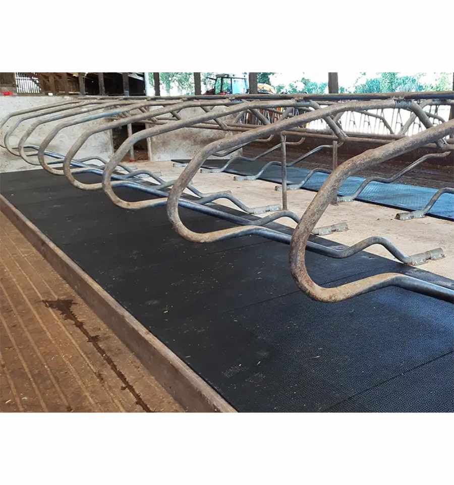 Notre tapis en caoutchouc de 30 mm d'épaisseur est idéal pour une installation en logette. Il augmente le confort des vaches, réduit les blessures et le stress pour un rendement plus élevé.