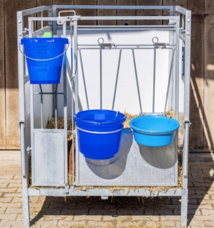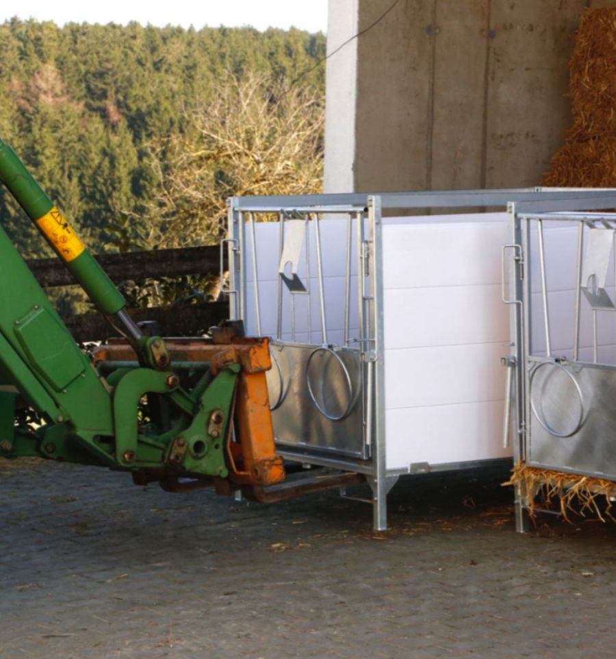 Le grand modèle est peu plus large et permet à l'éleveur de venir effectuer les soins sans déranger la succion du veau. Il offre également plus d'espace au veau afin qu'il puisse un peu plus bouger.