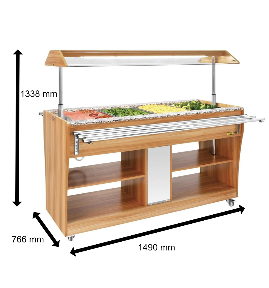 Conçu pour maximiser l'expérience client et la fluidité du service, le meuble buffet chaud possède :