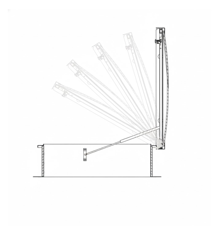Ce modèle est particulièrement recommandé pour les bâtiments industriels, logistiques ou tertiaires en construction. Son utilisation est très simple : une manivelle fixée au treuil mural permet d'ouvrir le lanterneau à la hauteur souhaitée, sans avoir besoin d'énergie électrique ou pneumatique.