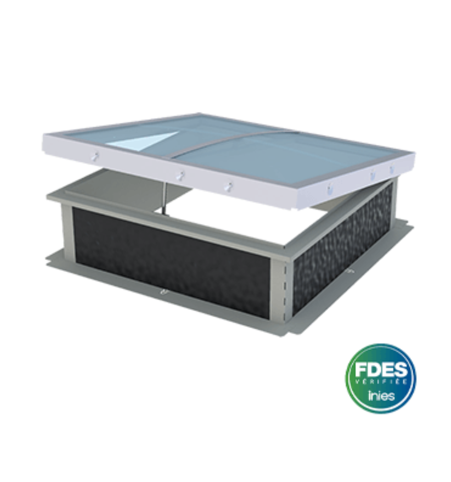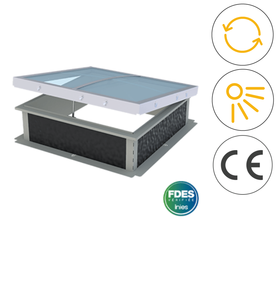 Attention : ce dispositif est exclusivement destiné à l'aération naturelle et ne doit pas être utilisé pour la mise en conformité incendie ; pour vos besoins de sécurité, consultez notre gamme de lanterneaux de désenfumage.