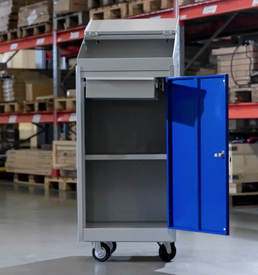 Le pupitre roulant verrouillable offre un poste de travail et un espace de stockage sécurisé et itinérant à ses utilisateurs.