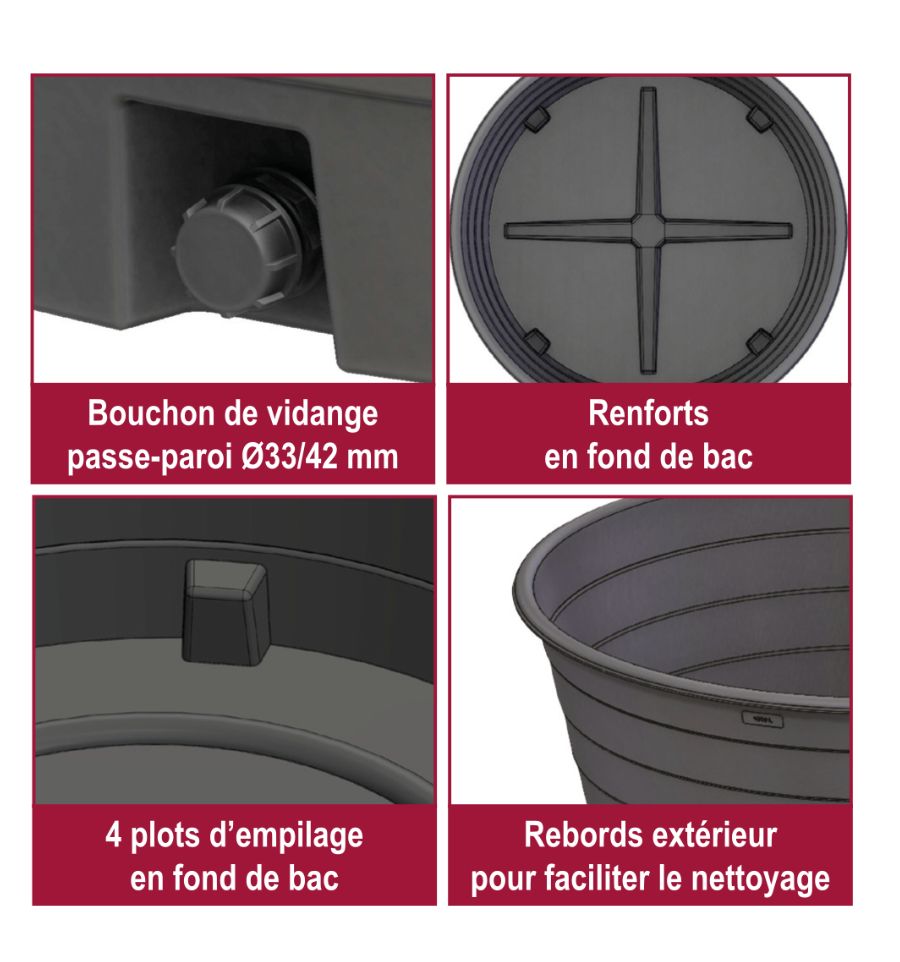 Sa grande contenance de 1000L permet de répondre aux besoins en eau de plusieurs animaux à la fois.