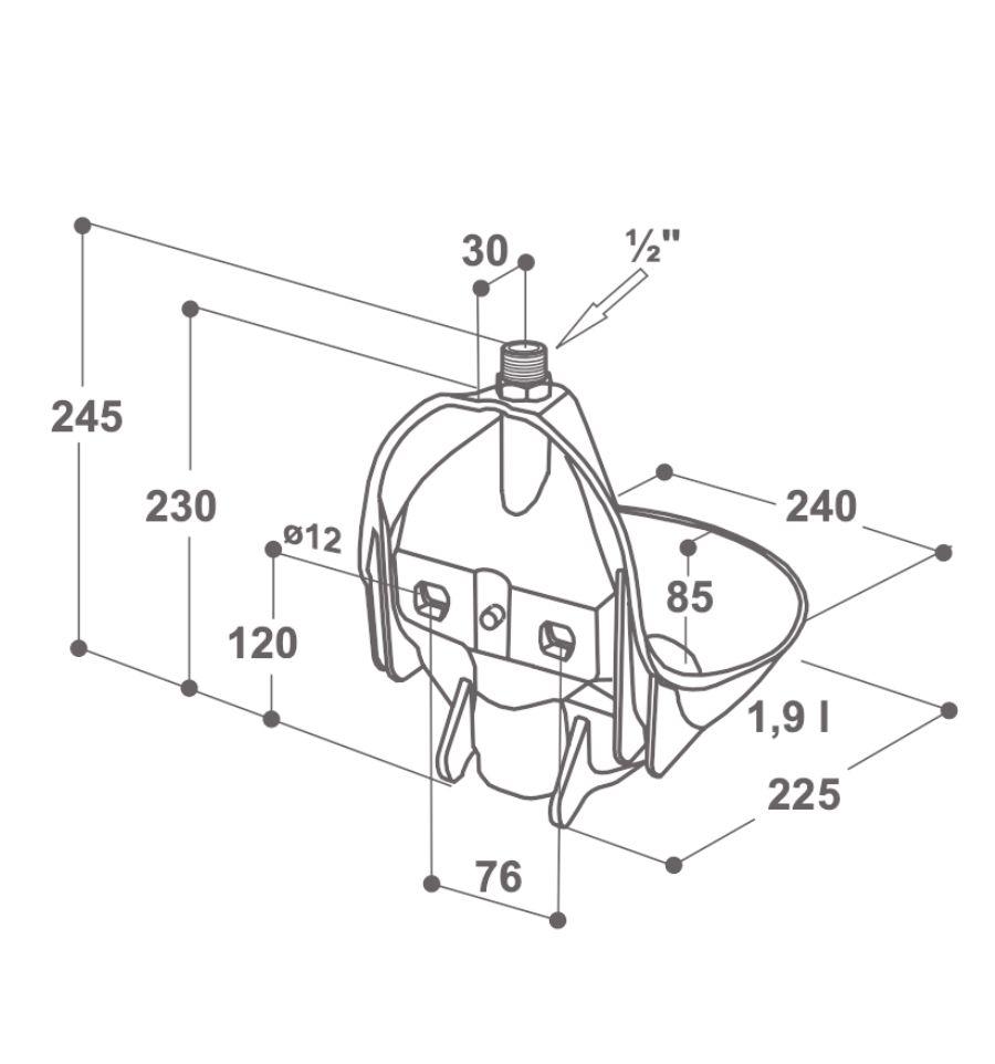 L'abreuvoir se fixe généralement sur un mur ou un poteau. Si vous décidez de l'installer sur un poteau, utilisez une bride de fixation adaptée pour poteau rond ou trèfle. À savoir une plaque de renfort à l'arrière de l'abreuvoir est également prévue afin d'assurer la fixation sur le mur.
