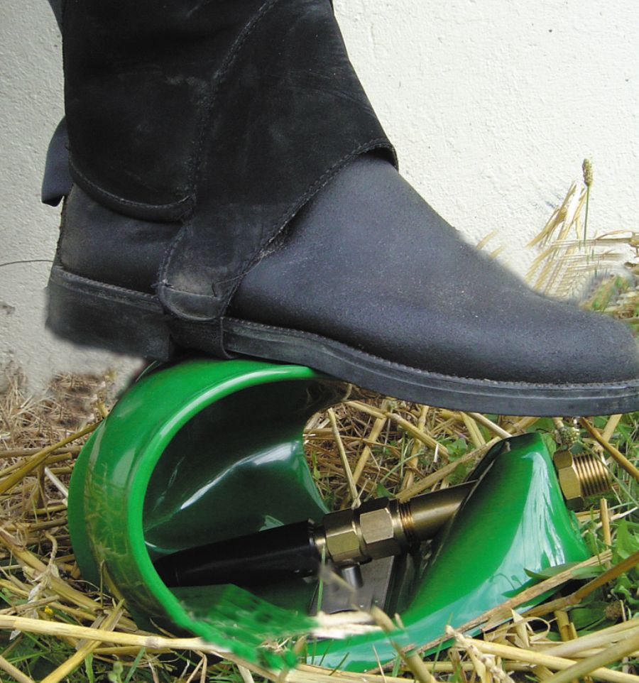 Veillez toutefois car certains chevaux lourds ou bovins peuvent malgré tout endommager la robinetterie située au-dessus. Nous proposons un étrier de protection en acier à installer en plus pour plus de sécurité.