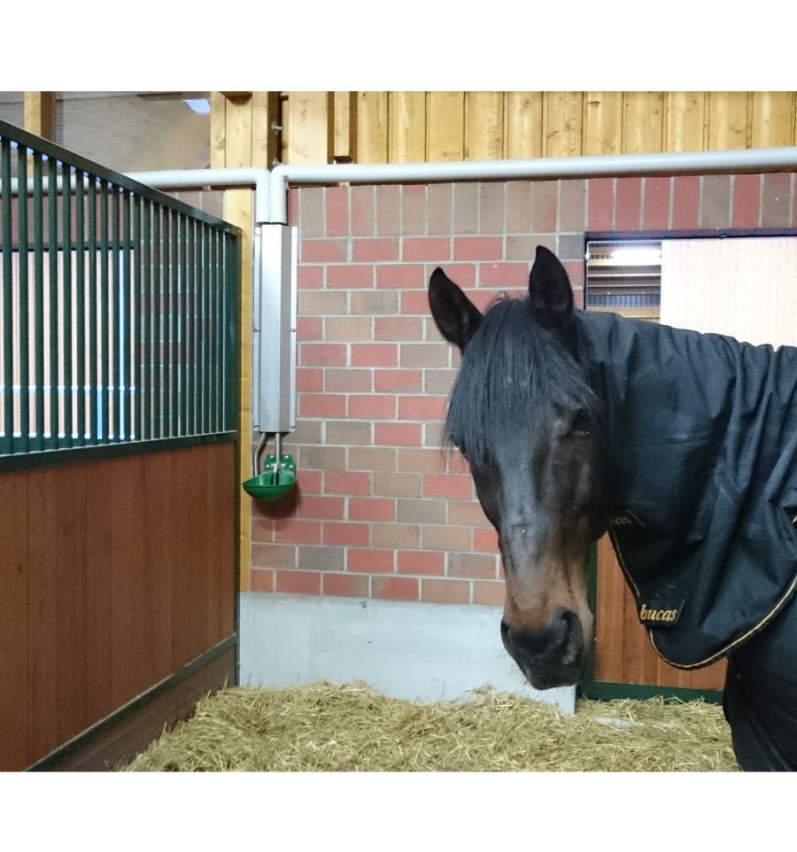 Cet abreuvoir pour chevaux est également utilisé en stabulation libre pour les veaux et même certains bovins. La soupape tubulaire ¾" (20/27 mm) se pousse dans toutes les directions, idéal pour les jeunes animaux ou bien des chevaux un peu craintifs.