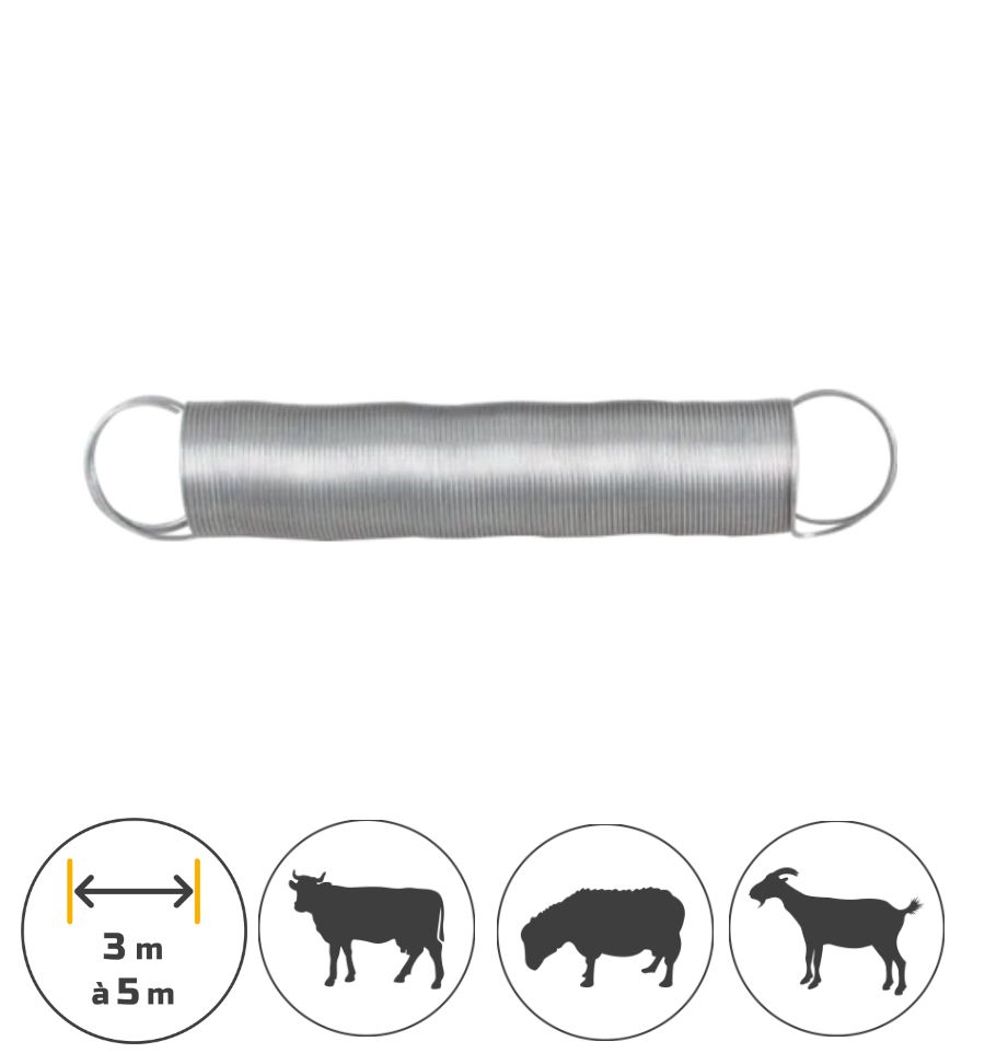 Il convient à différents types de portes de cloture de longueur de 3 à 5 m. Nous vous conseillons de placer 2 à 3 rangées de ressort suivant la taille de vos animaux.