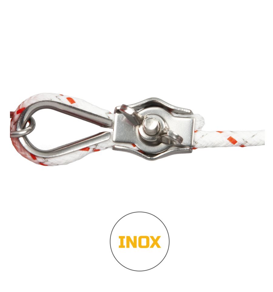 De plus, notre connecteur permet de répartir la force de traction sur la corde et améliore donc sa longévité.