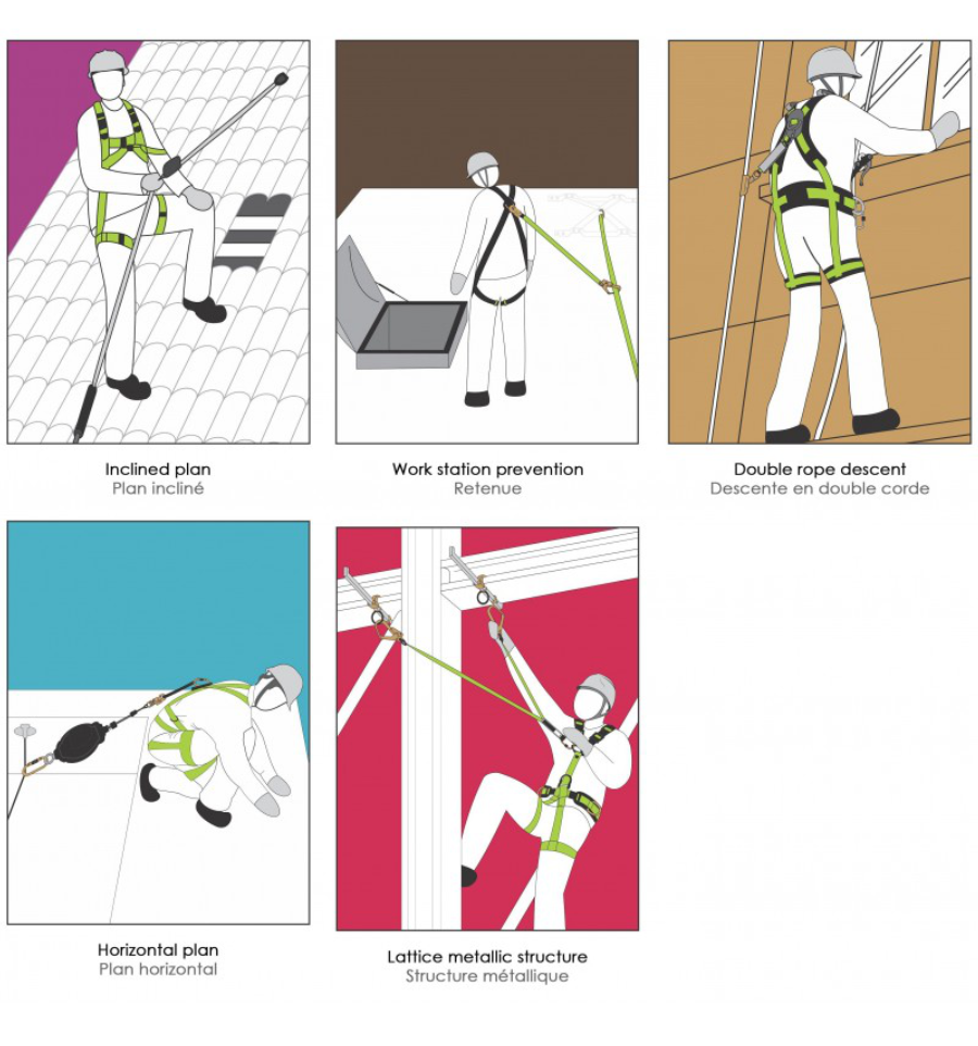 - S'accrocher à une structure sans avoir besoin de rajouter des longes d'ancrage,