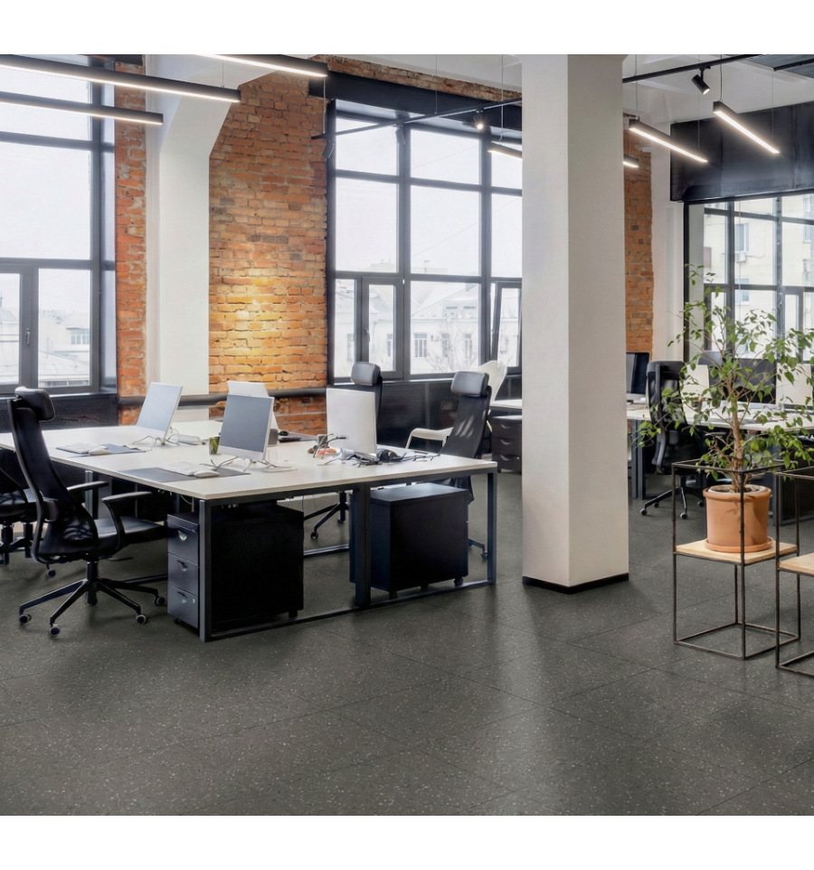 Découvrez les dalles pour sol de bureaux en vinyle ! Épaisses de 7 mm, elles supportent le passage intensif et les chaises à roulettes et sont très résistantes.