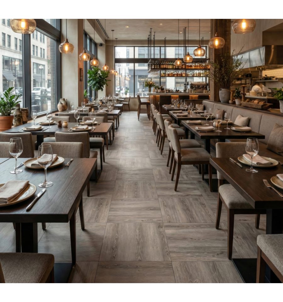 Sublimez votre salle restauration avec ces dalles en vinyle haute performance. Conçues pour supporter un flux de clientèle soutenu et un déplacement régulier du mobilier, ces dalles de 7 mm d'épaisseur allient robustesse et étanchéité.