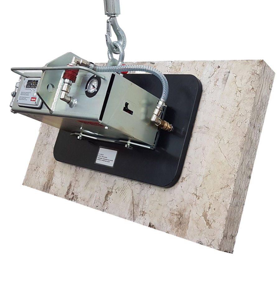 Notre palonnier à ventouse pour pierre, marbre ou béton est complètement modulable. Il offre une capacité de charge de 50 à 600 kg en fonction de la ventouse que vous choisissez.