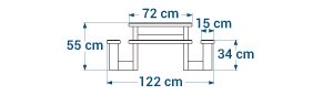 - Versio maternelle : L.122 x l.122 x H.55 cm