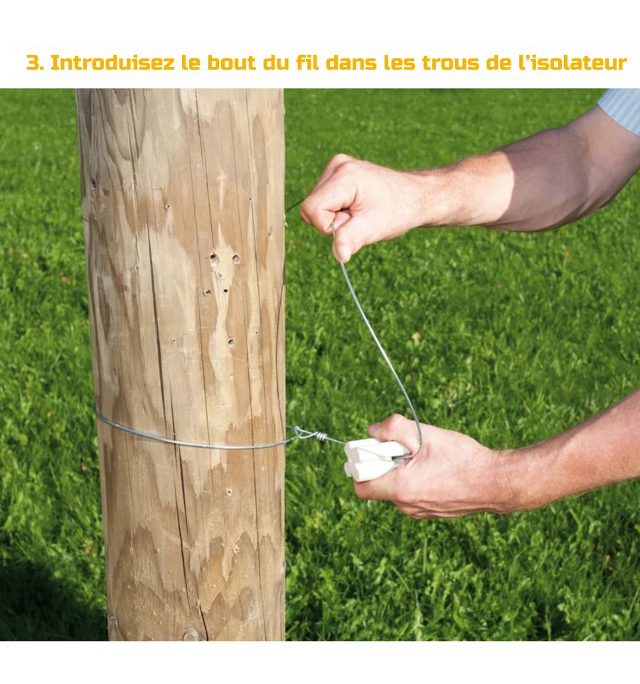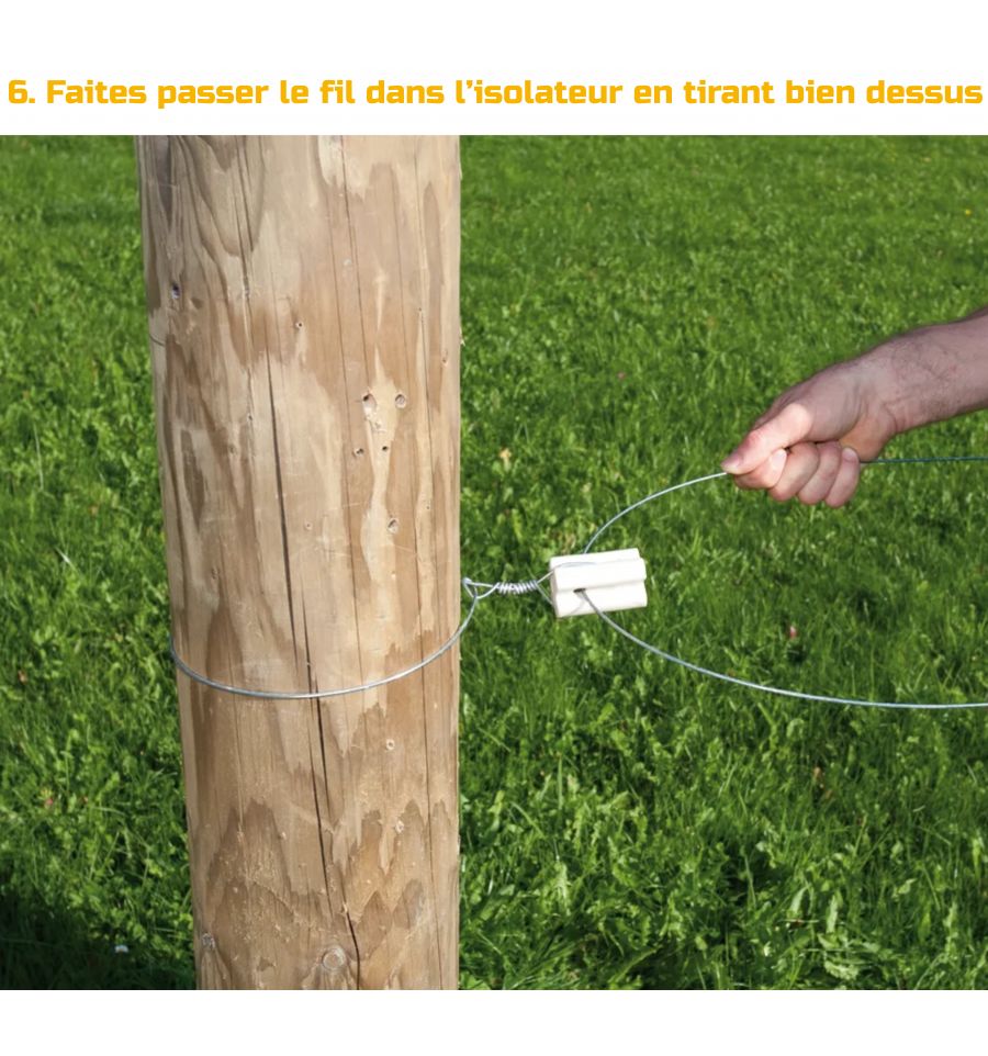 L'isolateur en porcelaine permet d'isoler électriquement efficacement le fil électrique, tout en supportant la tension provenant de l'ensemble de la clôture.