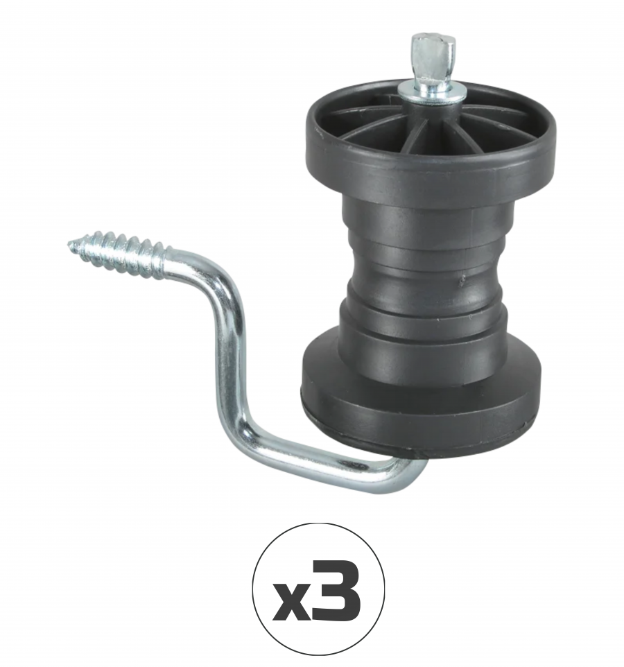 L'isolateur d'angle ruban facilite le changement de direction du conducteur dans une clôture, sans abîmer ce dernier. La poulie rotative permet de pivoter le ruban en cas de pression sur ce dernier.