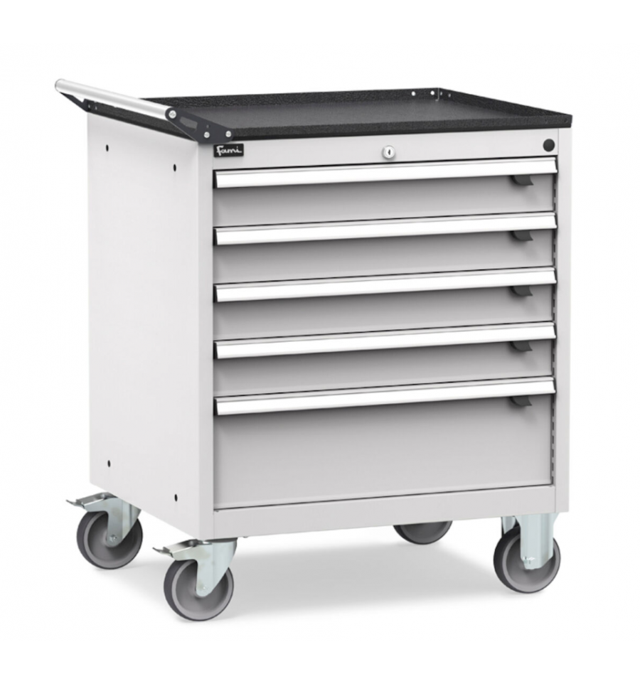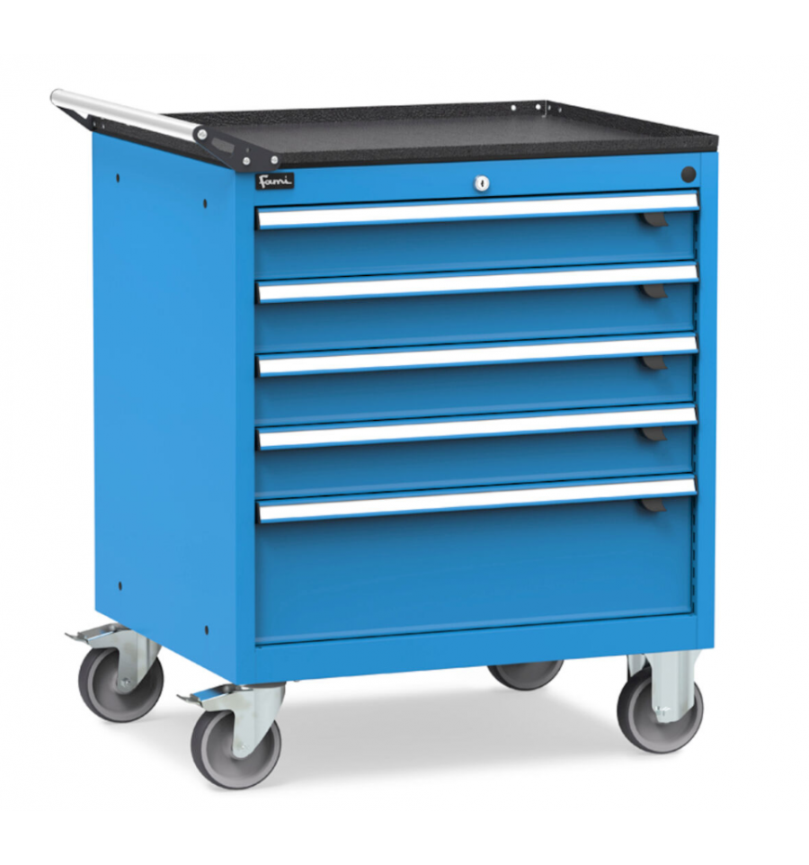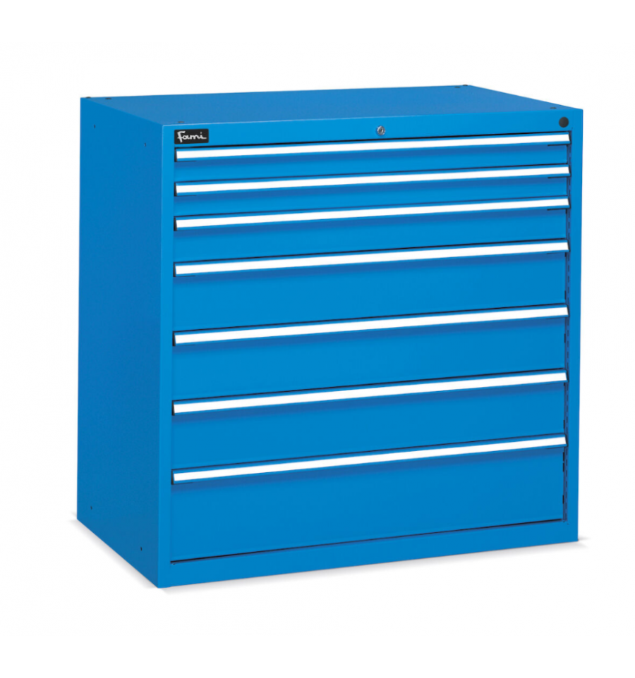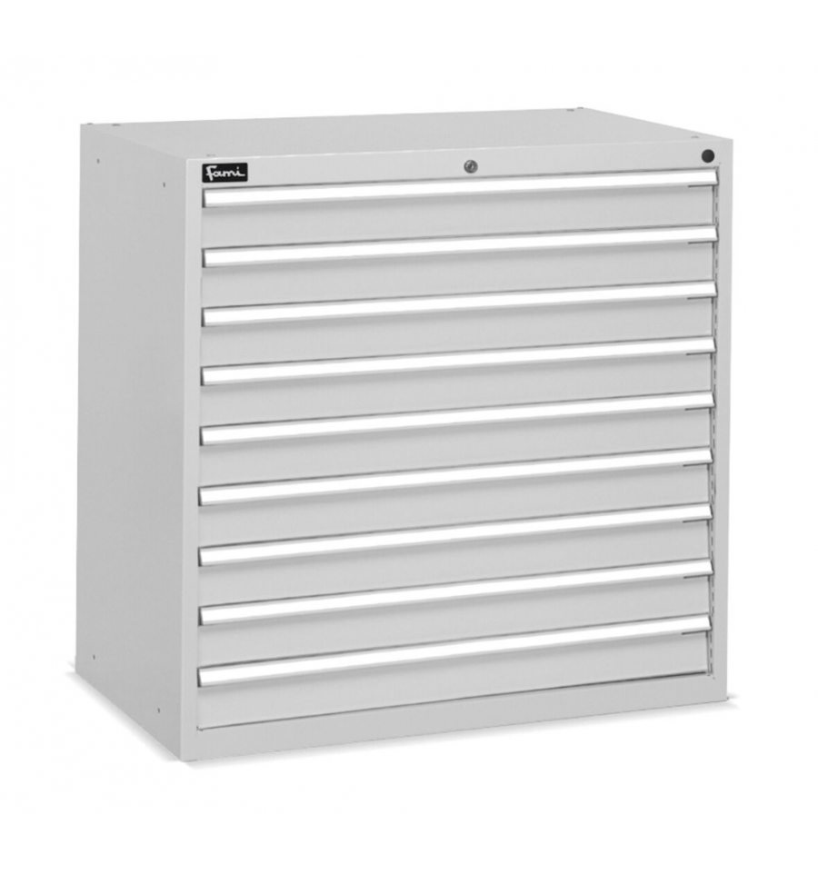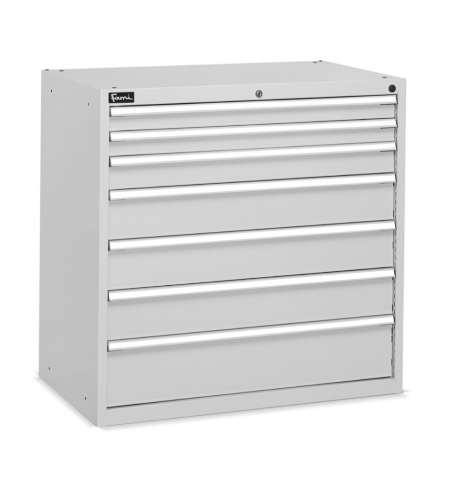 Disponible en 5, 7 ou 9 tiroirs, elle s'intègre parfaitement dans les entrepôts, industries, garages ou usines de fabrication.